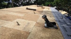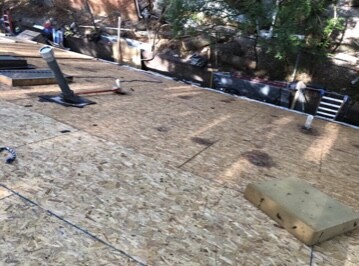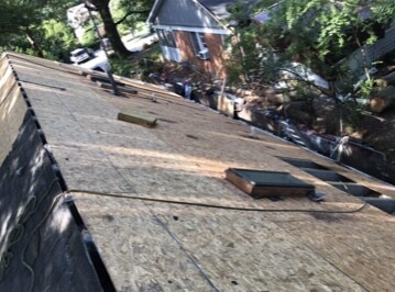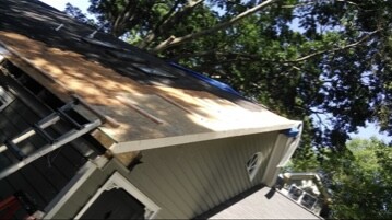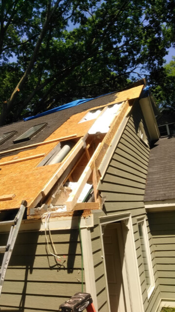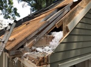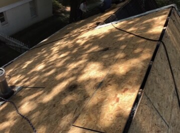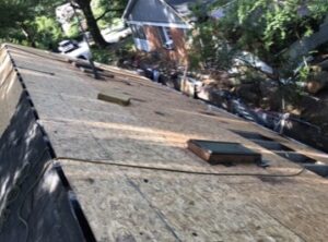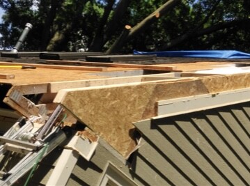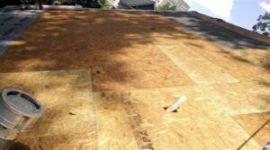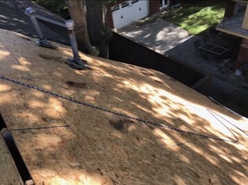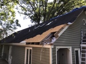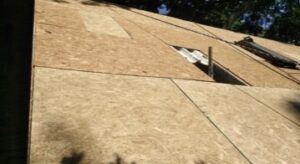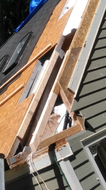 - Structural & Decking: Repair 2 broken trusses, replace damaged rafter tails, remove & replace 15 sheets 7/16″ OSB decking (≈128 sq ft).